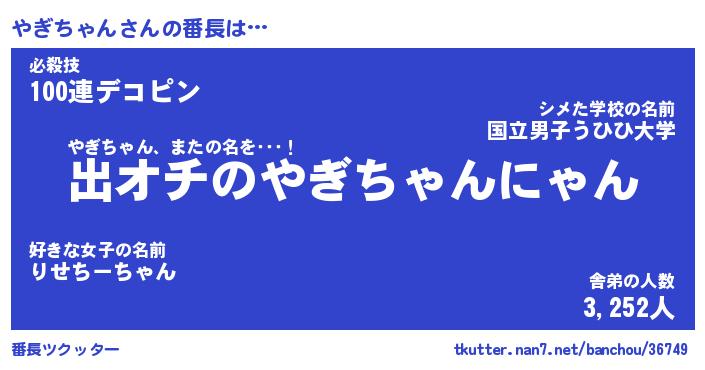 | ピコ太郎風あだ名 | 『ヤコ四郎』『ピヤ太郎』『ヤギ二郎』 |