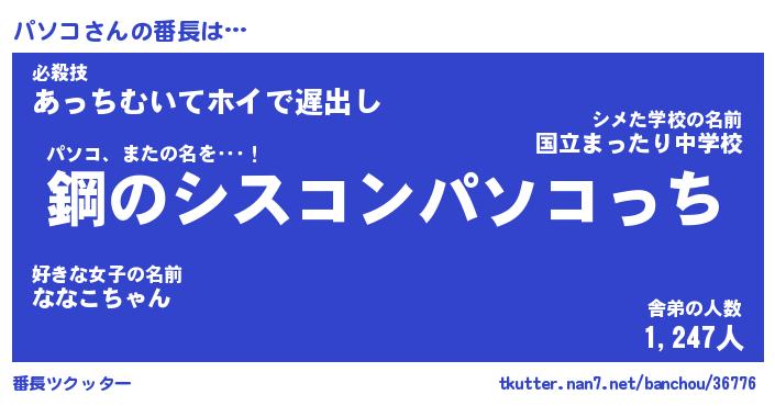 | 伝説のあだ名 | 『封印されしスナイパーパソコ』 |