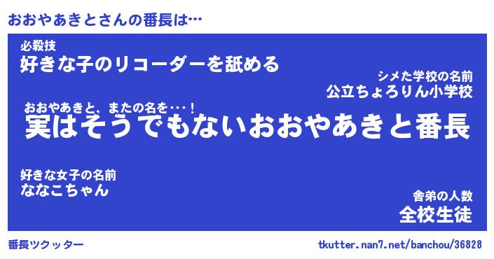 | 伝説のあだ名 | 『封印されしスナイパーおおやあきと』 |