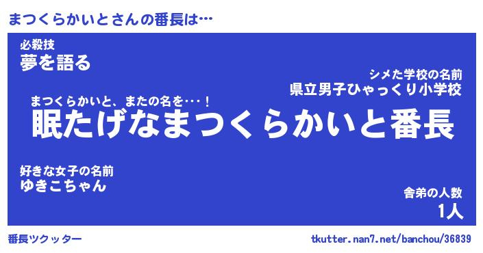 | ヒーロー風カッコイイあだ名 | 『スーパーマツクラカイト』 |