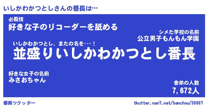 | 肩書あだ名 | 『いしかわかつとし御曹司』 |