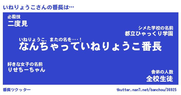 | 伝説のあだ名 | 『伝説のスナイパーいねりょうこ』 |