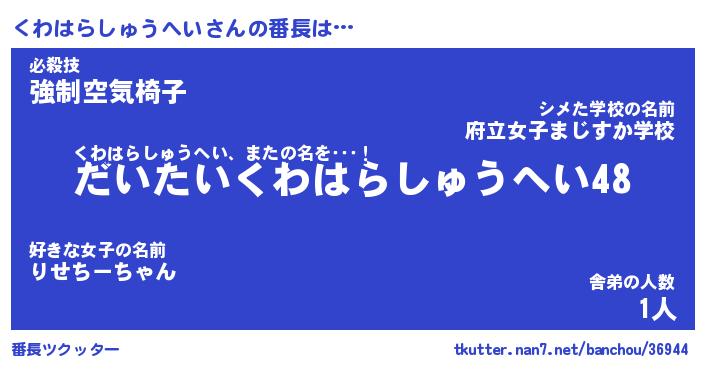 | 意味不明あだ名 | 『ペロリンくわはらしゅうへい』 |