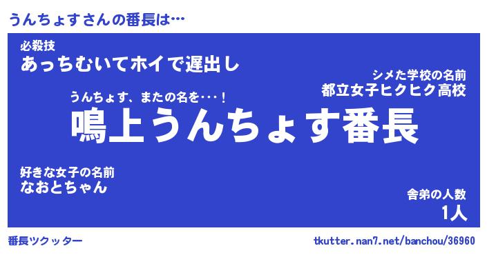 | ファンタジー風あだ名 | 『ウンフェル』『エターナルウンチョスー』 |