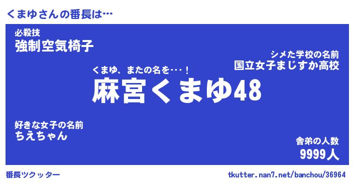 | 意味不明あだ名 | 『ペロリンくまゆ』『くまゆフォーエバー』 |