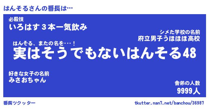 | ヘコむあだ名 | 『はんにゅー』『酢こんぶ』『はんお』 |
