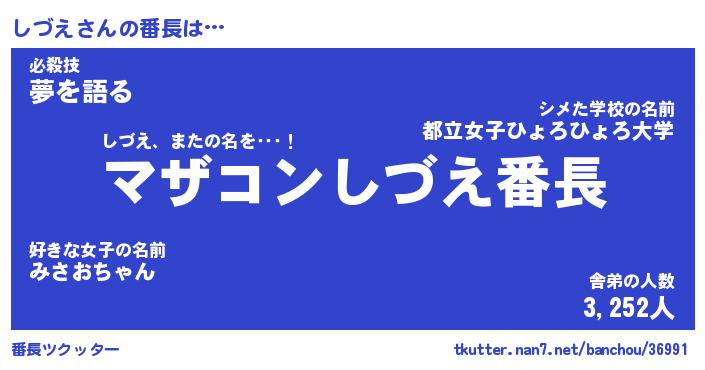 | 肩書あだ名 | 『しづえ社長』『しづえ国家主席』 |