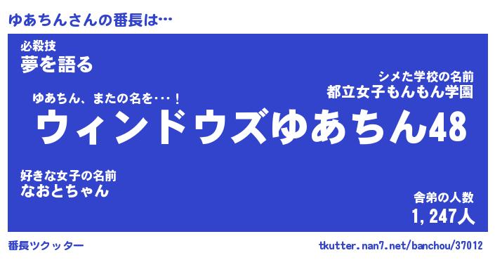 | 意味不明あだ名 | 『ペロリンゆあちん』『永久保存ゆあちん』 |