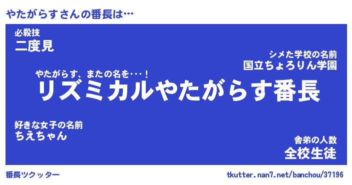 | 2回繰り返すあだ名 | 『やたやた』『ややたた』『うねうね』 |