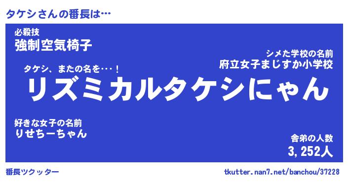 | 意味不明あだ名 | 『ペロリンタケシ』『タケシフォーエバー』 |