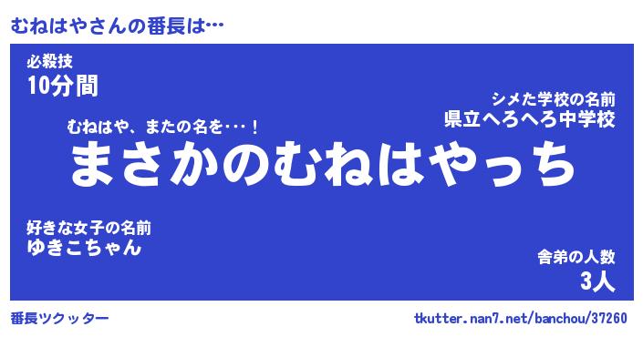 | 意味不明あだ名 | 『ペロリンむねはや』『永久保存むねはや』 |