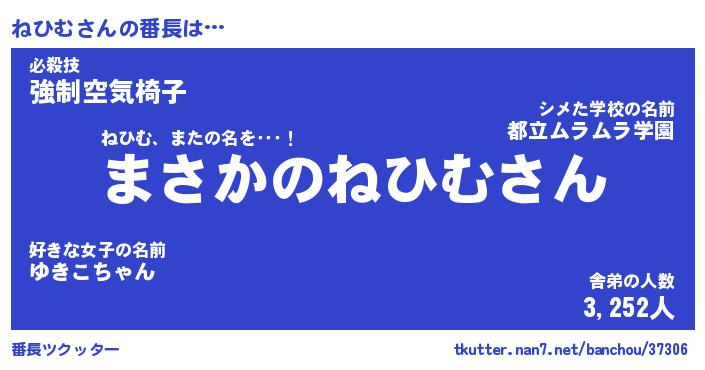 | ヒーロー風カッコイイあだ名 | 『スーパーネヒム』『ウルトラねひむマン』 |