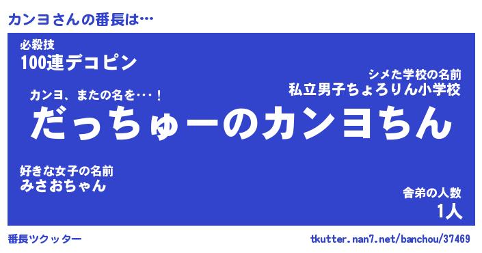 | 男性向けラノベタイトル風あだ名 | 『カンヨの憂鬱』 |