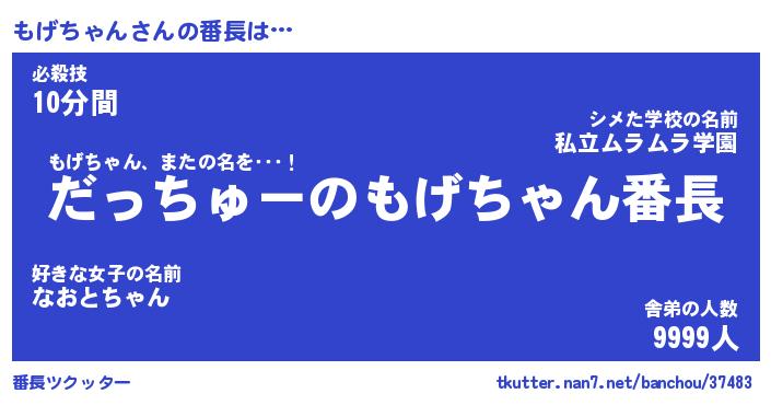 | 伝説のあだ名 | 『伝説のスナイパーもげちゃん』 |