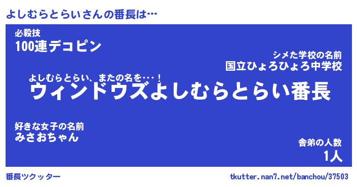 | 肩書あだ名 | 『よしむらとらい店長』 |
