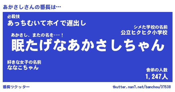 | 意味不明あだ名 | 『ペロリンあかさし』『永久保存あかさし』 |