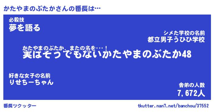 | 伝説のあだ名 | 『封印されしスナイパーかたやまのぶたか』 |