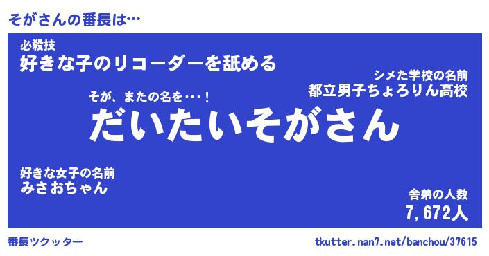 | ピコ太郎風あだ名 | 『ソコ一郎』『ピソ五郎』『ソガ二郎』 |