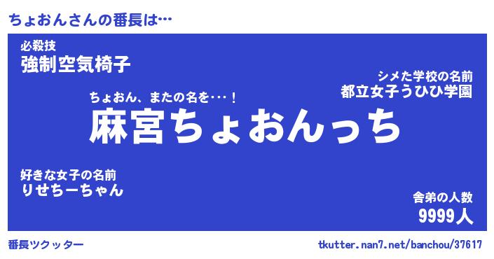 | ファンタジー風あだ名 | 『チョフェル』『エターナルチョオンー』 |