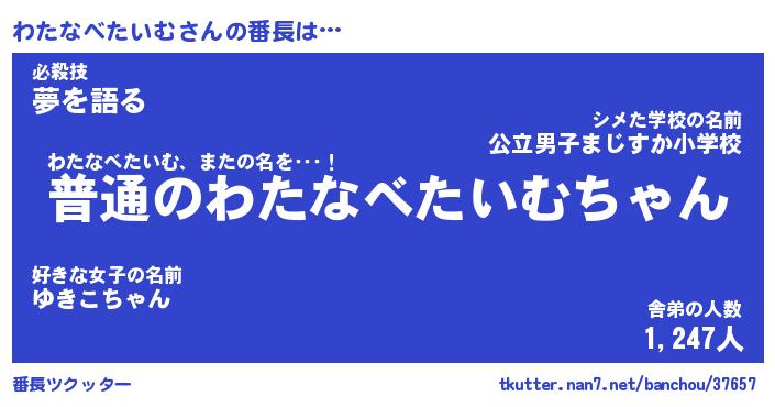 | 男性向けラノベタイトル風あだ名 | 『わたなべたいむの憂鬱』 |