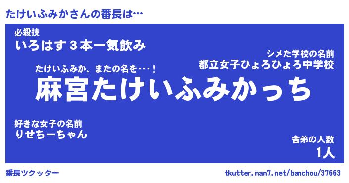 | ヒーロー風カッコイイあだ名 | 『スーパータケイフミカ』『天弓騎士タケ』 |