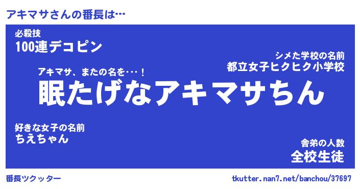 | 意味不明あだ名 | 『ペロリンアキマサ』『永久保存アキマサ』 |