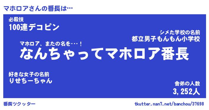 | ピコ太郎風あだ名 | 『マコ次郎』『ピマ史郎』『マホ八郎』 |