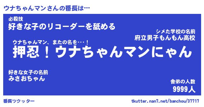 | 伝説のあだ名 | 『封印されしスナイパーウナちゃんマン』 |