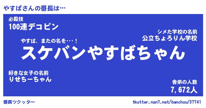| ヒーロー風カッコイイあだ名 | 『スーパーヤスバ』『ウルトラやすばマン』 |