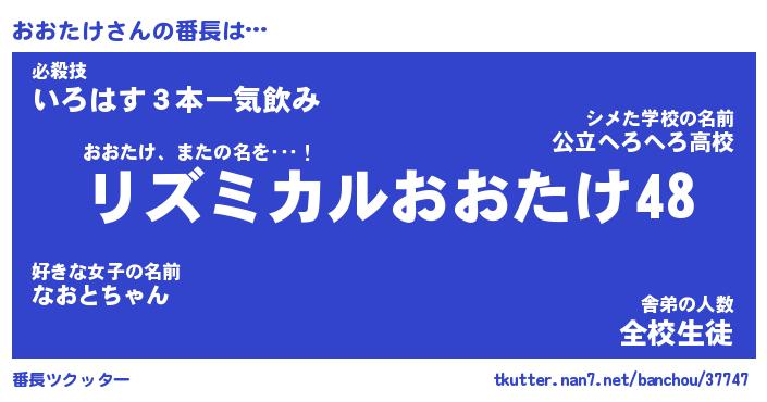 | 意味不明あだ名 | 『ペロリンおおたけ』『永久保存おおたけ』 |