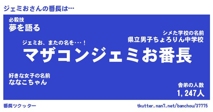 | 肩書あだ名 | 『ジェミお店長』『ジェミお総理大臣』 |