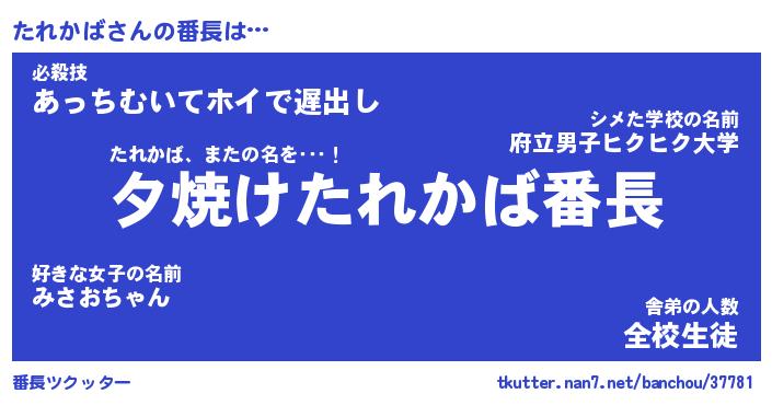 | 恥ずかしいあだ名 | 『プリティーたれかば』『たれっちょ』 |