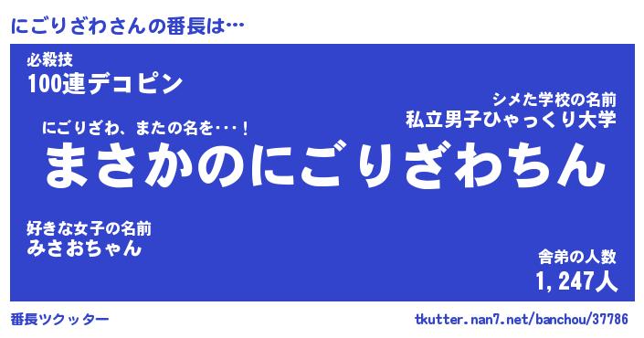 | ファンタジー風あだ名 | 『ニゴフェル』『エターナルニゴリザワー』 |