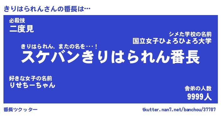 | 胡散臭い通販商品みたいなあだ名 | 『モテモテ間違いなし霊験あらたかなお札…その名も「きりはられん」』 |