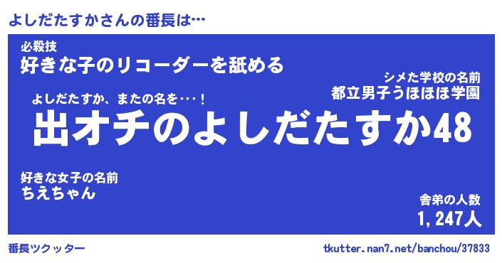 | ヒーロー風カッコイイあだ名 | 『スーパーヨシダタスカ』『炎刃騎士ヨシ』 |