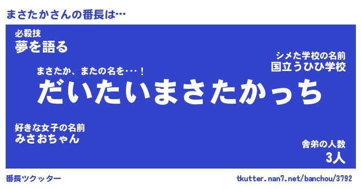 | 意味不明あだ名 | 『ペロリンまさたか』『永久保存まさたか』 |