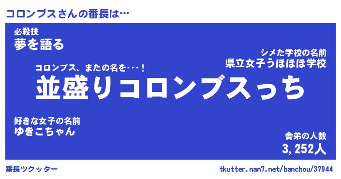 | 男性向けラノベタイトル風あだ名 | 『コロンブスの憂鬱』 |