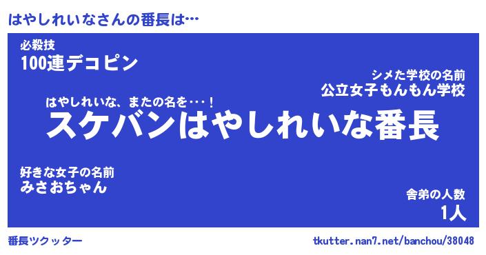 | 伝説のあだ名 | 『不死鳥のスナイパーはやしれいな』 |