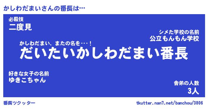 | 肩書あだ名 | 『かしわだまい社長』『かしわだまい校長』 |