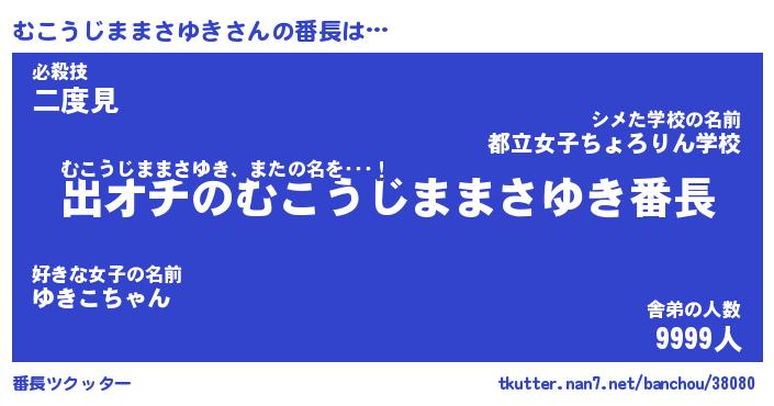 | 男性向けラノベタイトル風あだ名 | 『むこうじままさゆきの憂鬱』 |