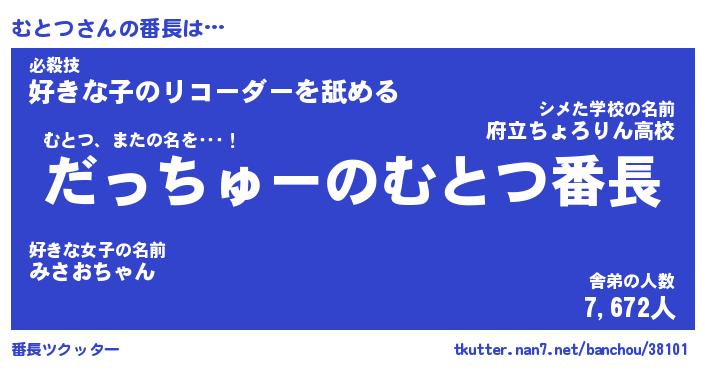 | ヒーロー風カッコイイあだ名 | 『スーパームトツ』『ウルトラむとつマン』 |