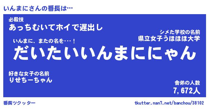 | 意味不明あだ名 | 『ペロリンいんまに』『永久保存いんまに』 |