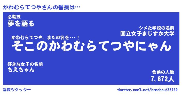 | 肩書あだ名 | 『かわむらてつや店長』 |