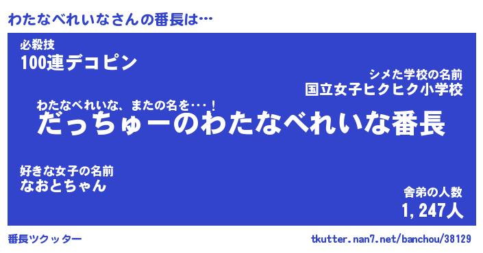 | 2回繰り返すあだ名 | 『わたわた』『わわたた』『あんあん』 |