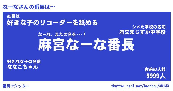 | 伝説のあだ名 | 『不死鳥のスナイパーなーな』 |