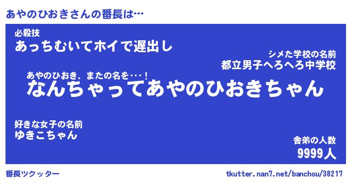| 伝説のあだ名 | 『伝説のスナイパーあやのひおき』 |