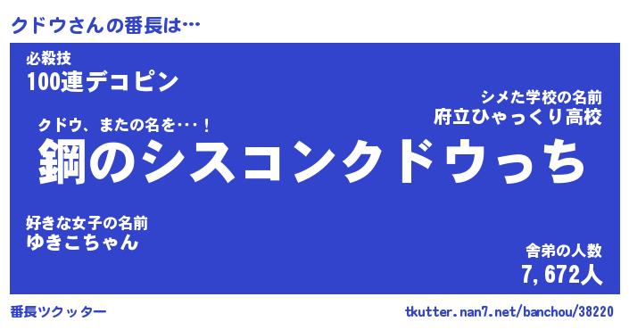 | ヒーロー風カッコイイあだ名 | 『スーパークドウ』『ウルトラクドウマン』 |