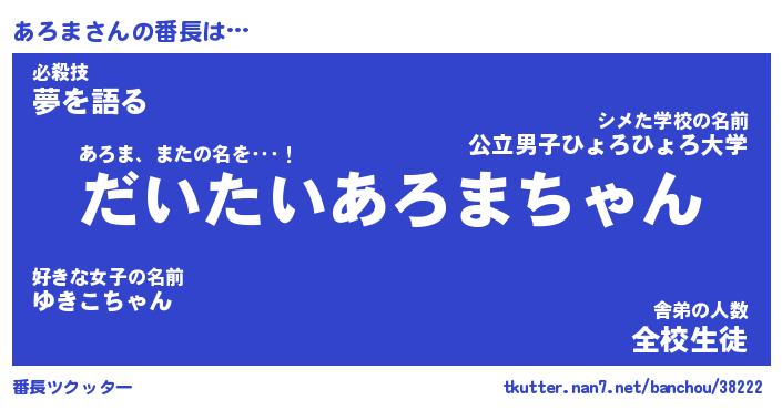 | 肩書あだ名 | 『あろま社長』『あろま大統領』 |