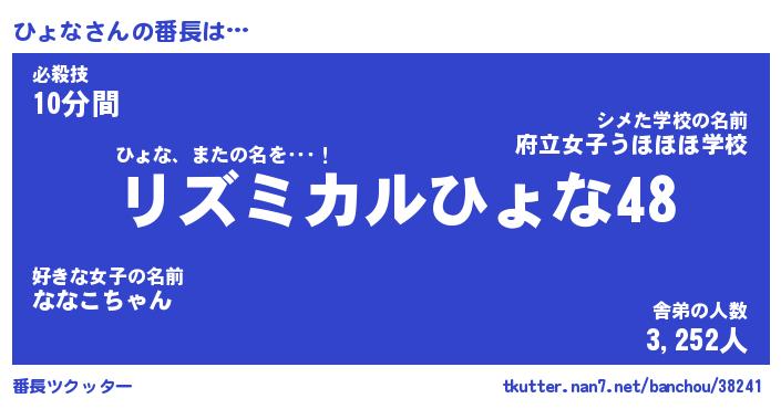 | 意味不明あだ名 | 『ペロリンひょな』『ひょなフォーエバー』 |