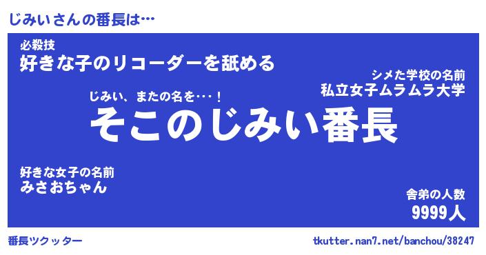 | ヒーロー風カッコイイあだ名 | 『スーパージミイ』『ウルトラじみいマン』 |